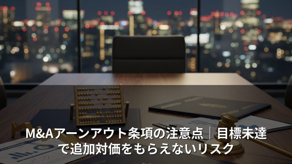 アーンアウト条項は売り手に不利なリスクをはらんでいます。目標未達・利益操作・経営権喪失など4つのリスクと、受け入れ前に確認すべき実務的な対策を詳解します。 -