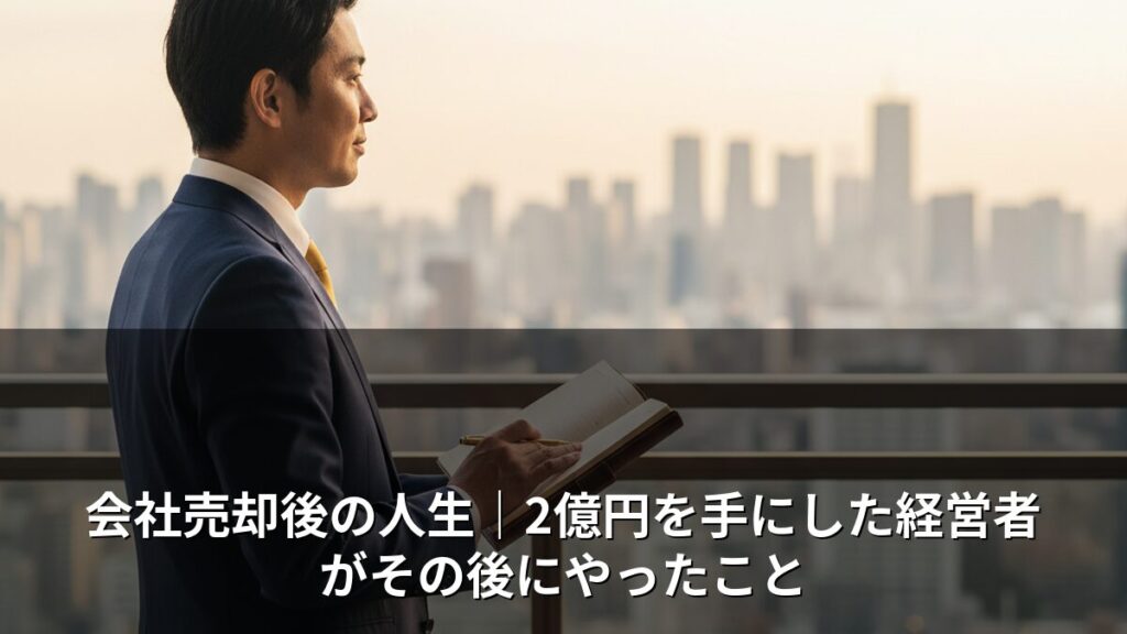 ※当サイトはアフィリエイト広告を含みます。 会社を売った。まとまったお金が口座に振り込まれた。でも、翌朝目が覚めたとき——何をすればいいのか、わからなかった。 M&Aアドバイザーとして多くの経営者の売却を支援してきた中で、「売却後の虚無感」は驚... -