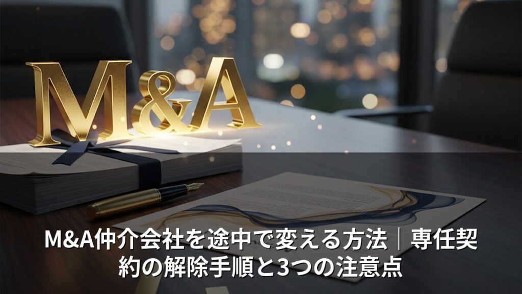 M&A仲介会社の専任契約を途中解除して別会社に切り替える手順と注意点を解説。テール条項・違約金リスクへの対処法も詳しく紹介。 -