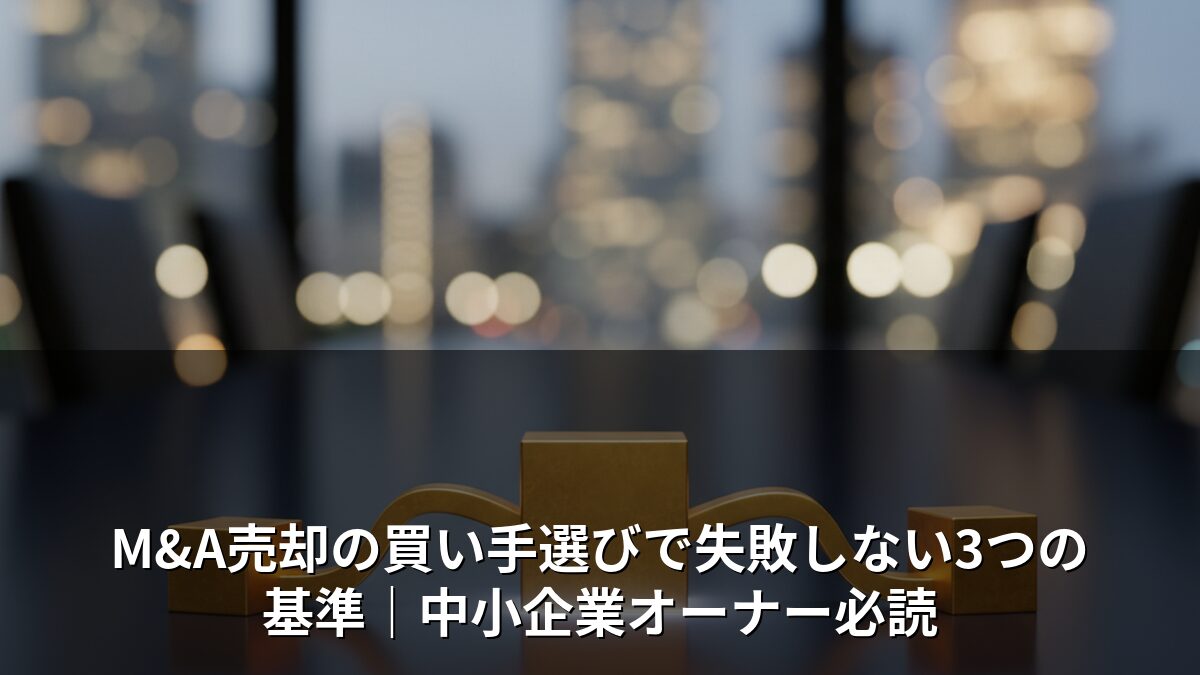 この記事では、M&A売却における買い手選びの判断軸を、実務視点で3つの基準にまとめてお伝えします。売却活動の途中にある方にも、これから検討を始める方にも、必ず役立つ内容です。