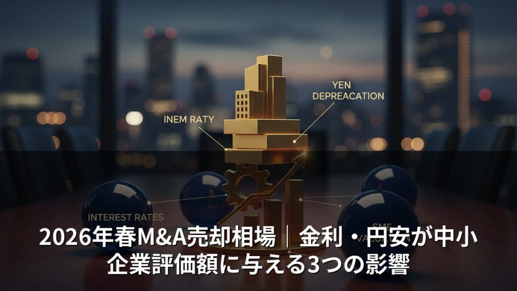 2026年の金利上昇・円安環境でM&A売却相場はどう変わるか。中小企業オーナーが知るべき評価額への3つの影響と、今が売り時かどうかを判断する5つのポイントを実務経験者が解説します。 -