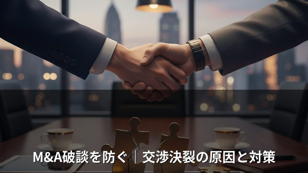 M&A交渉が破談になる原因をフェーズ別に解説。LOI締結後も20〜30%が成約に至らない現実を踏まえ、売り手経営者が取るべき具体的な破談防止策を詳しく紹介します。 -