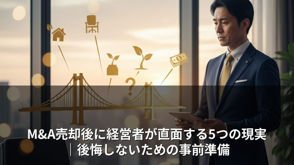 M&A売却を終えた後、多くの経営者が予期せぬ現実に直面します。アイデンティティ喪失からアーンアウトのプレッシャーまで、5つの現実と事前準備を実務経験から解説します。