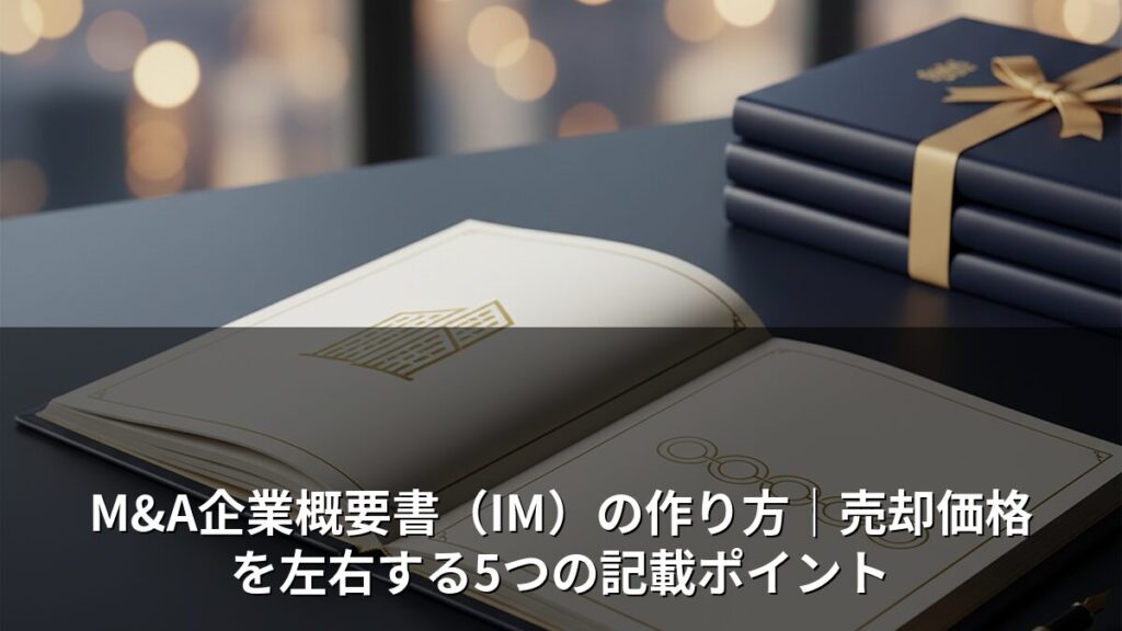M&Aで買い手候補に送る企業概要書(IM)の書き方を実務経験者が解説。売却価格を最大化する5つの記載ポイントと、避けるべき3つのミスを確認しましょう。